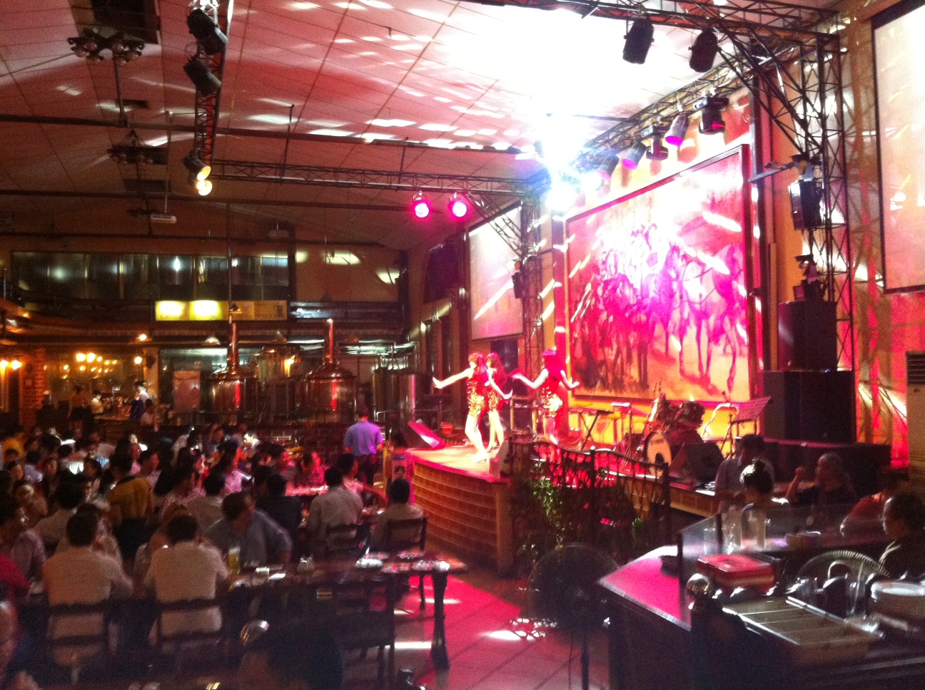 This tour was on a Friday which means a big difference from the previous calm Wednesday brewery tours. When we came to Legend beer at Vu ngoc phan, there were hundreds of people, live techno music and other forms of performances on the stage. Luckily we didn’t listen to the beer, that had been impossible due to the high music volume. They had one black beer with a light note of liquorice but otherwise with a quite light body and not really well structured. The blond beer was a light lager with some extra hops in it and probably around 4% alcohol, of the two beers, the black one was to prefer.