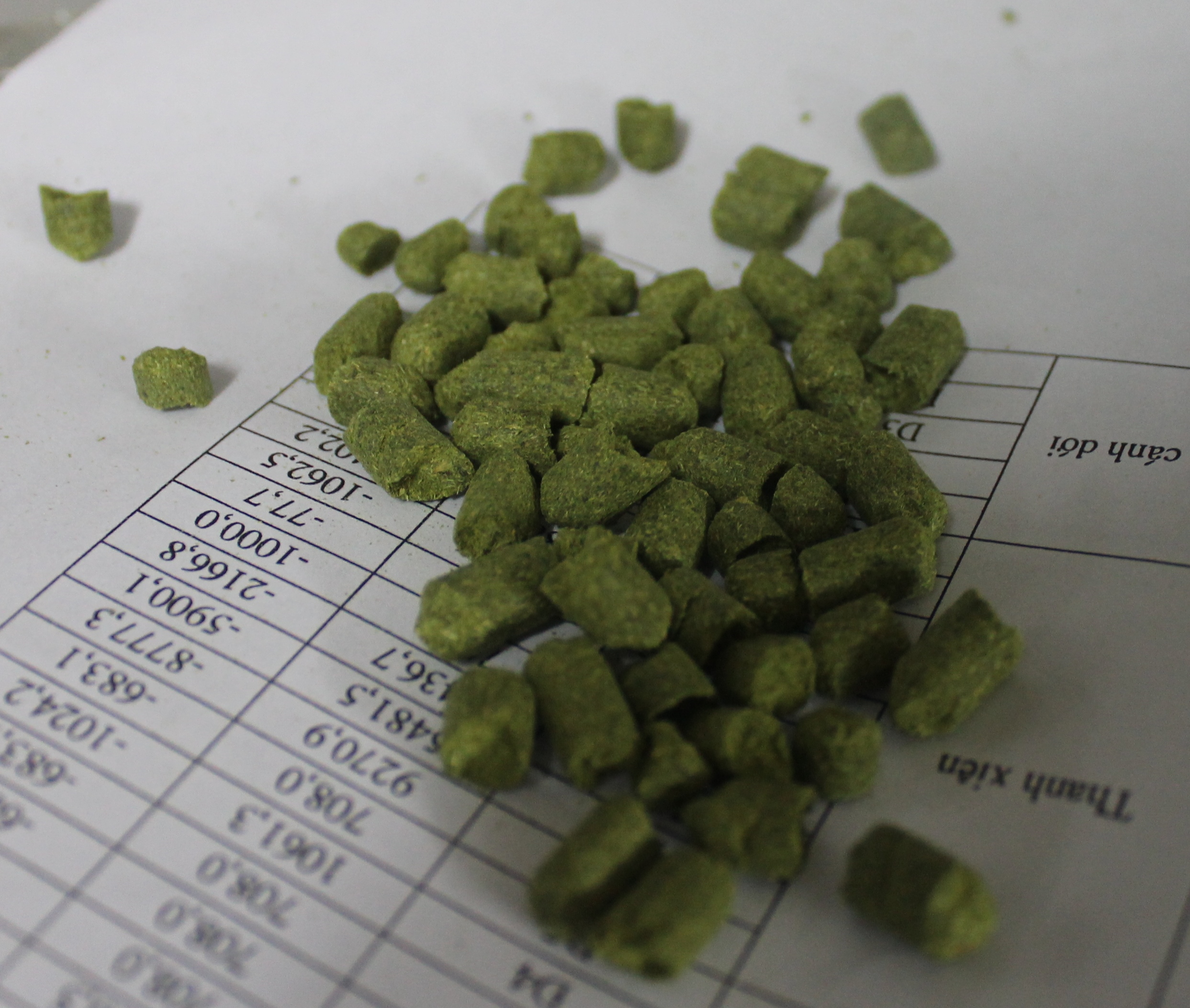 After five breweries we ended up at Mai Vien Brauhaus and everyone was impressed by the black beer which is full bodied and full on coffee and chocolate notes. Here a picture of hops pellets used by Maivien Brauhaus. The hops is added during two different times during the boiling of the beer, first amount is for the bitterness and the last hops is added 10 minutes before the end to give the beer extra aroma. For 400 liters of beer, Mai Vien uses about 80-100 kg malt and almost 1.5 kilo Hops. Picture shows a few gram of Czech sass hops.