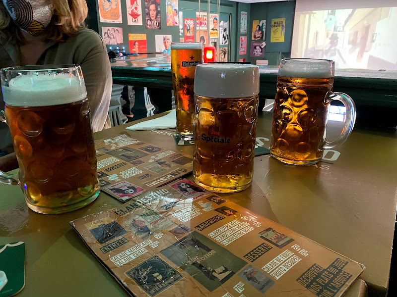 This is Le Chill which has Leffe served in proper glasses! The door is black and there are no windows so can be a bit tricky to spot. This is a really good and popular bar where you can eat good and drink. After 8 pm it can be hard to get a table on week ends.