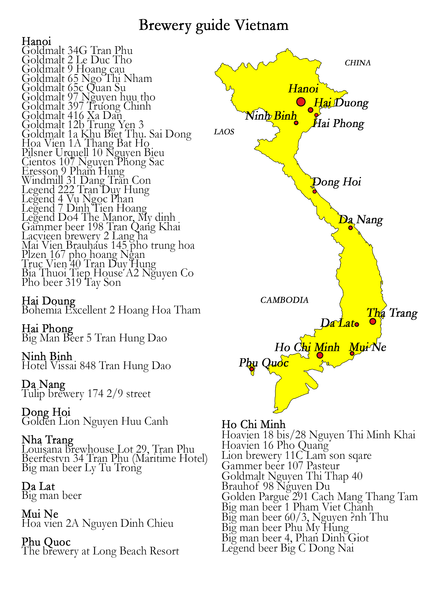 If you want to know about all the Vietnamese lager beers read citypassguides beer test. So here is the list with microbreweries, the list with craft breweries is on the blog and will be included in a Complete Guide to Vietnams beer scene in middle of 2018.
